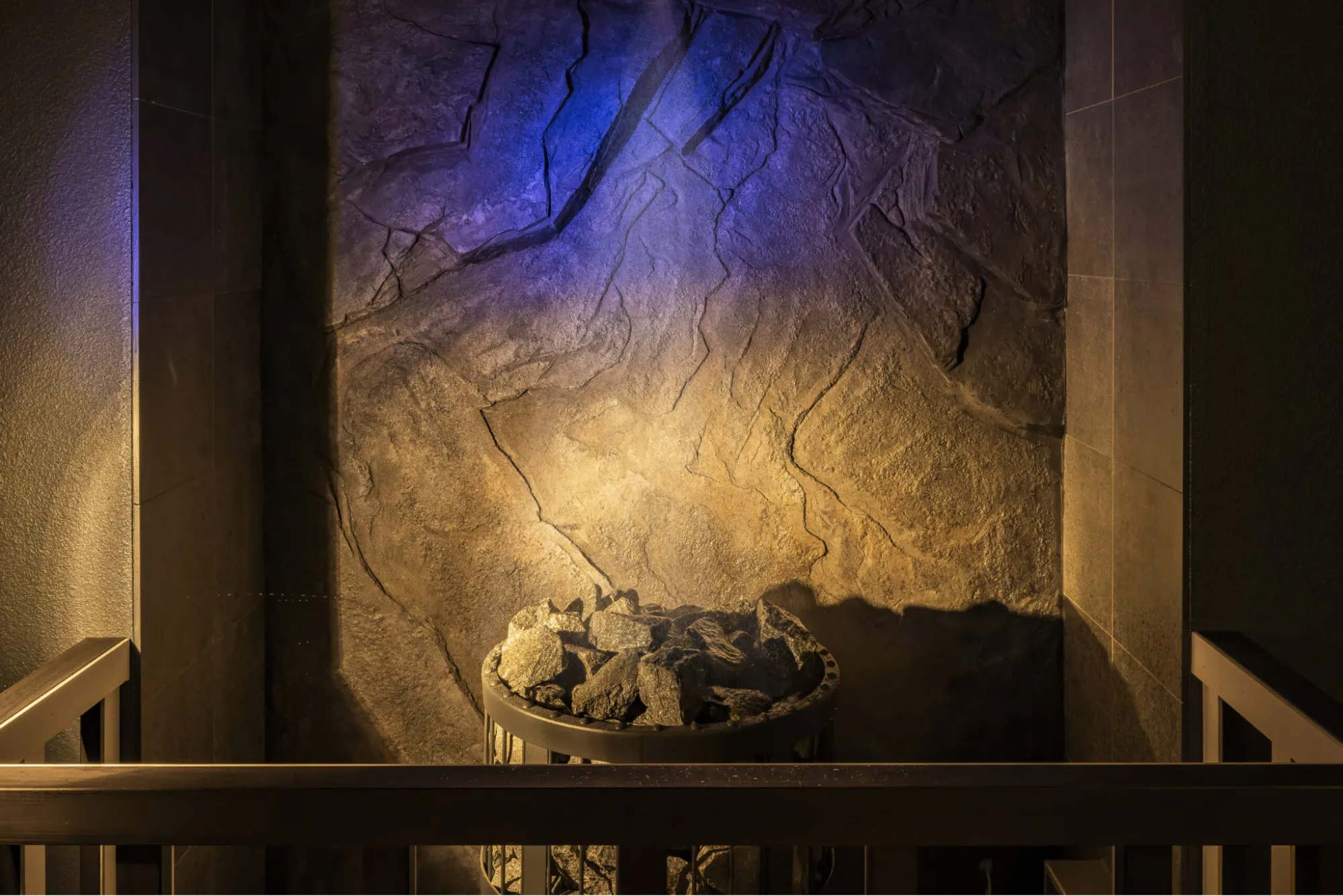 サウナ室や浴場には岩や土を思わせる素材や色調を取り入れ、地下ならではのオアシスのような神秘的な雰囲気を表現しました。