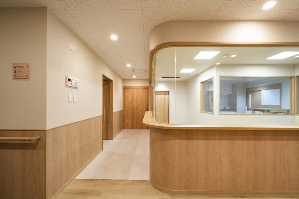 内装には明るく穏やかな木目調の仕上げと柔らかな色彩を取り入れ、自然の温もりが感じられる明るく安心感のある空間に仕上げました。
