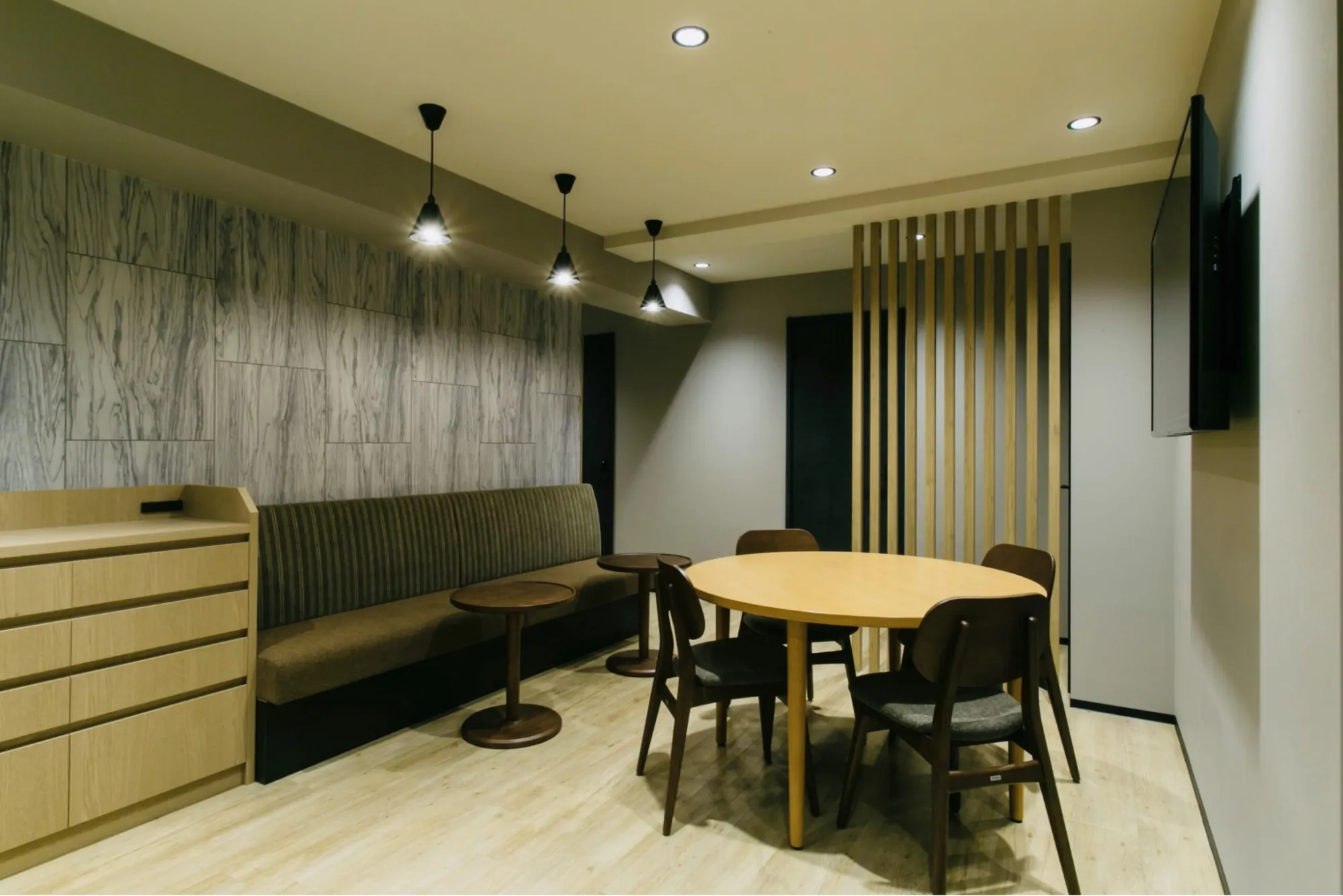 館内に足を踏み入れると、木格子や行灯風の照明、各カプセル入口の暖簾など、江戸の伝統意匠を現代風にアレンジしたデザインが随所に施されています。