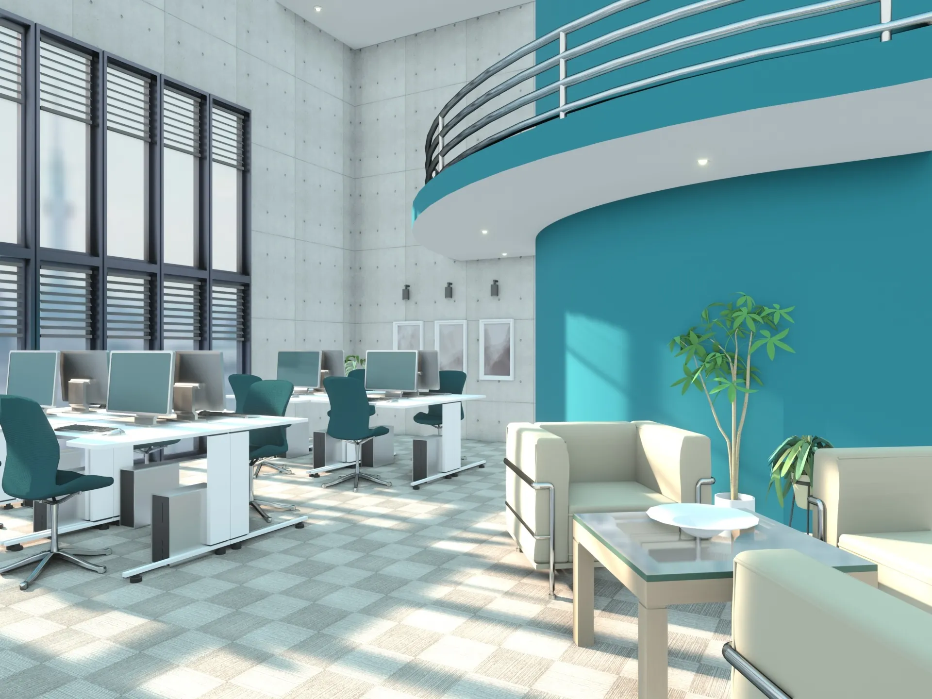 たとえば、自社のコーポレートカラーを内装のアクセントとして配色に加えると、空間全体に一体感が生まれます。