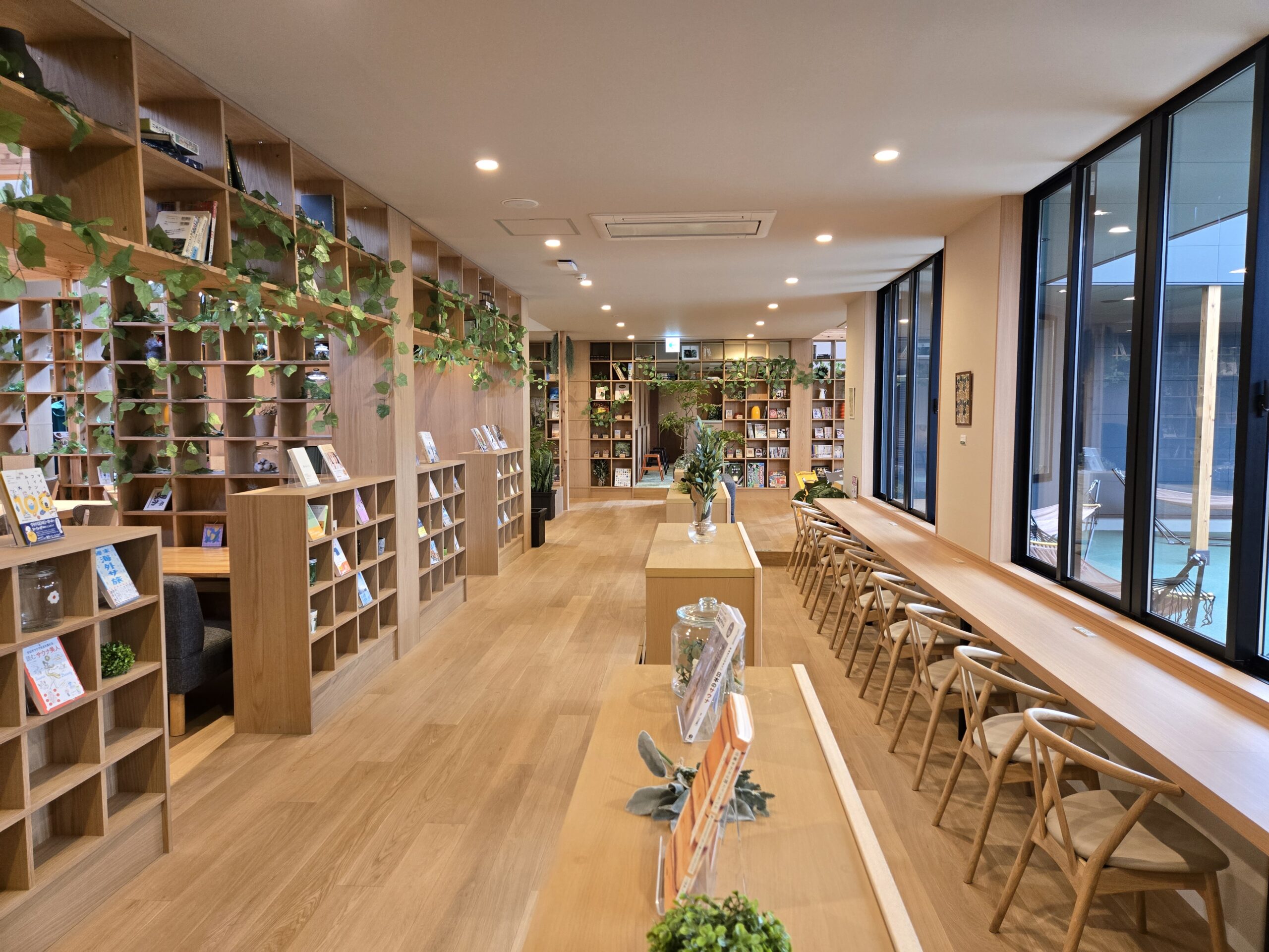飲食コーナーや、雑誌・漫画を自由に閲覧できるリラックススペースも充実しており、一日を通して楽しめる施設となっています。計画変更を重ねながら、予算や工期の調整には苦労もありましたが、無事に予定通りのオープンを迎えることができました。